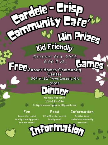 Wednesday, October 1st - 5:30 P.M., Cordele City Hall Courtroom